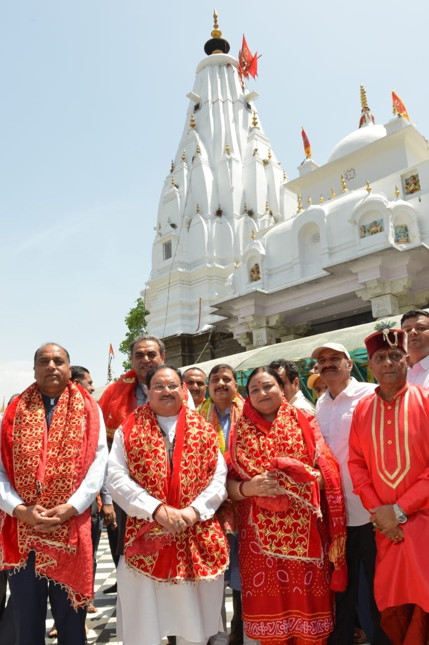 शिमला। सांसद एवं भाजपा के राष्ट्रीय अध्यक्ष जगत प्रकाश नड्डा तथा मुख्यमंत्री जयराम ठाकुर ने आज कांगड़ा जिला के प्रसिद्ध शक्तिपीठ ‘श्री ब्रजेश्वरी मन्दिर’ में शीश नवाया तथा पूजा-अर्चना की।