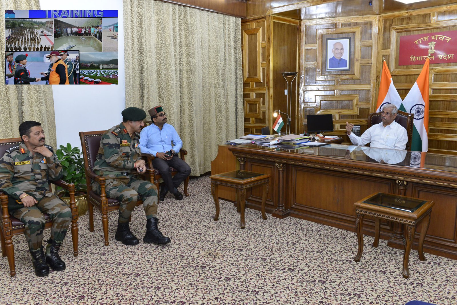 शिमला, एनसीसी के कार्यवाहक ग्रुप कमांडर कर्नल सुरेश भैक ने आज राजभवन में राज्यपाल राजेंद्र विश्वनाथ आर्लेकर से भेंट की।राज्यपाल ने कहा कि जीवन के सभी क्षेत्रों में प्रेरित नेतृत्व वाले मानव संसाधन का विकास करने के अलावा, कैडेट्स में चरित्र, कामरेडशिप, अनुशासन, निःस्वार्थ सेवा और साहस आदि गुणों का संचार करने के प्रयास किए जाने चाहिए ताकि वे देश के प्रति समर्पण की भावना से कार्य कर सकें। कर्नल सुरेश भैक ने राज्यपाल को एक प्रस्तुति के माध्यम से हिमाचल प्रदेश में एनसीसी की कार्यप्रणाली और प्रशिक्षण गतिविधियों से अवगत करवाया। उन्होंने कहा कि 1948 में 20 हजार कैडेट्स से शुरुआत करने वाली एनसीसी में वर्तमान में 13 लाख से अधिक कैडेट्स हैं। उन्होंने कहा कि वर्तमान में 367 स्कूलों और 94 कालेजों में एनसीसी गतिविधियां है और राज्य में 29994 कैडेट्स नामांकित हैं। राज्यपाल के सचिव विवेक भाटिया तथा एनसीसी ग्रुप शिमला के अन्य अधिकारी भी इस अवसर पर उपस्थित थे।