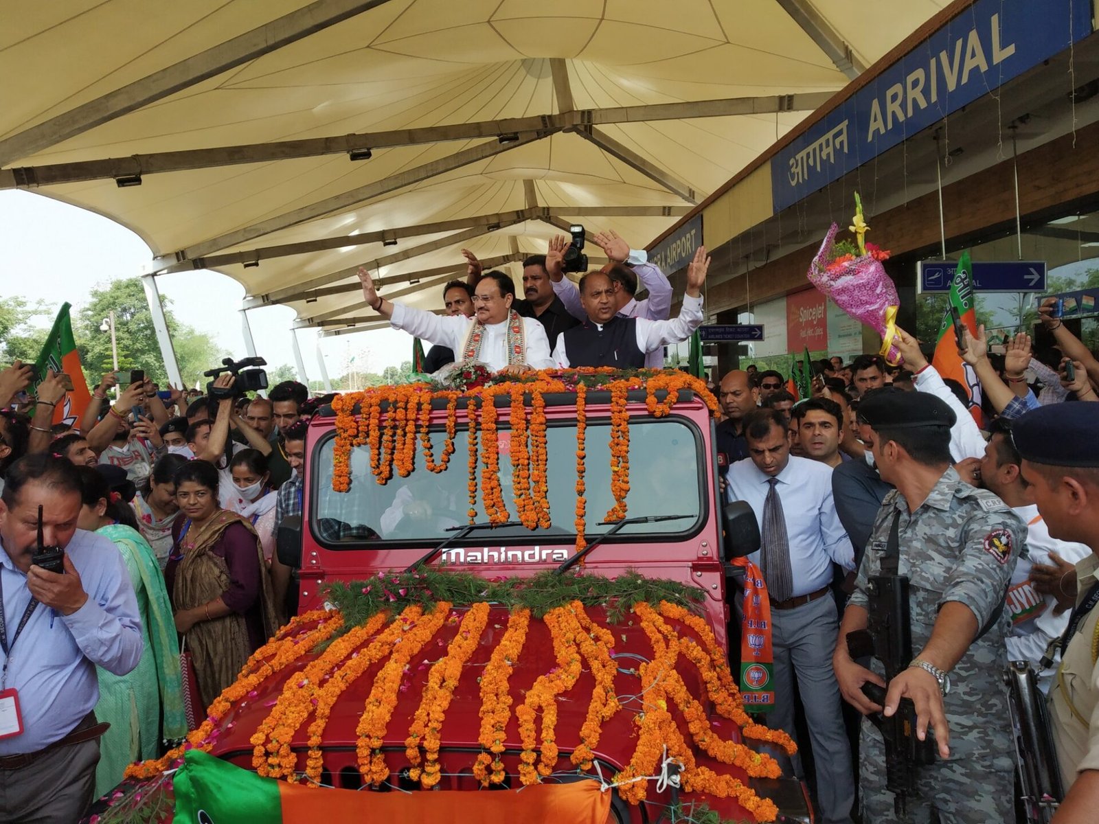 शिमला भाजपा के राष्ट्रीय अध्यक्ष और सांसद जगत प्रकाश नड्डा का जिला कांगड़ा के गग्गल हवाई अड्डा से धर्मशाला मार्ग में लोगों द्वारा भव्य स्वागत किया गया।मुख्यमंत्री जय राम ठाकुर ने गग्गल हवाई अड्डे पर भाजपा के राष्ट्रीय अध्यक्ष का स्वागत किया।जगत प्रकाश नड्डा धर्मशाला में विभिन्न राज्यों के भाजपा युवा मोर्चा के पदाधिकारियों के राष्ट्रीय प्रशिक्षण शिविर की अध्यक्षता करने के लिए आए हैं। विधानसभा अध्यक्ष विपिन सिंह परमार, सामाजिक न्याय एवं अधिकारिता मंत्री सरवीन चौधरी, प्रदेश भाजपा के महासचिव और राज्य वूल फेडरेशन के अध्यक्ष त्रिलोक कपूर, विधायक विशाल नेहरिया, अरूण कुमार, रविन्द्र धीमान, अर्जुन सिंह ठाकुर, रीता धीमान और मुल्ख राज प्रेमी तथा भाजपा जिला अध्यक्ष चन्द्रभूषण नाग इस अवसर पर उपस्थित थे।