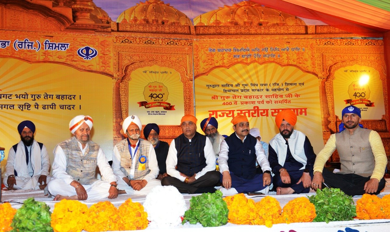 शिमला, मुख्यमंत्री जयराम ठाकुर ने आज शिमला के रिज पर श्री गुरू तेग बहादुर जी के 400वें प्रकाश पर्व के उपलक्ष्य पर गुरूद्वारा साहिब श्री गुरू सिंह सभा शिमला द्वारा हिमाचल प्रदेश सरकार के समन्वय से आयोजित राज्य स्तरीय समागम में भाग लिया।