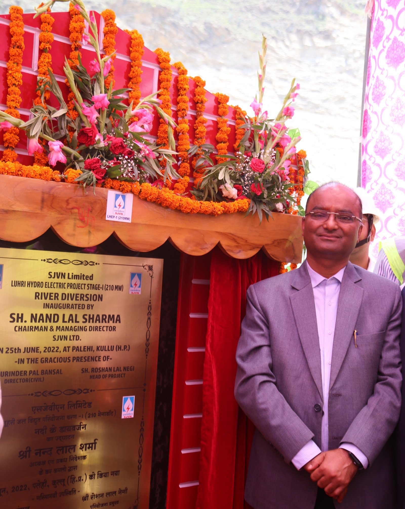 शिमला। एसजेवीएन के अध्यक्ष व प्रबंध निदेशक नंद लाल शर्मा ने शनिवार को अंतिम विस्फोनट संपन्नड़ करके 210 मेगावाट की लूहरी चरण-1 जल विद्युत परियोजना के नदी डायवर्जन का उद्घाटन किया। उन्होंने पेनस्टक के निर्माण का आरंभ और डायवर्जन टनल गेट्स के निर्माण कार्यों का भी उद्घाटन किया। इस अवसर पर एसपी बंसल, निदेशक (सिविल), आरएल नेगी परियोजना प्रमुख सहित अन्य वरिष्ठ अधिकारी भी उपस्थित थे।