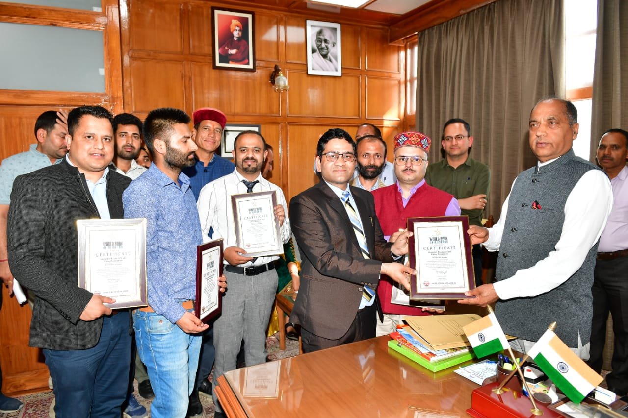 शिमला, हिमाचल प्रदेश में शतरंज के खेल को बढ़ावा देने में प्रयासरत चैस मैराथन के सदस्यों ने शनिवार को मुख्यमंत्री जय राम ठाकुर से भेंट की। सदस्यों ने मुख्यमंत्री को उनकी टीम द्वारा लगातार 72 घण्टे तक डिजिटल चैस बोर्ड पर शतरंज खेलने का नया विश्व कीर्तिमान स्थापित करने के बारे में जानकारी दी। इसका डिजिटल लाइव ब्रॉडकास्ट के माध्यम से सीधा प्रसारण भी किया गया।