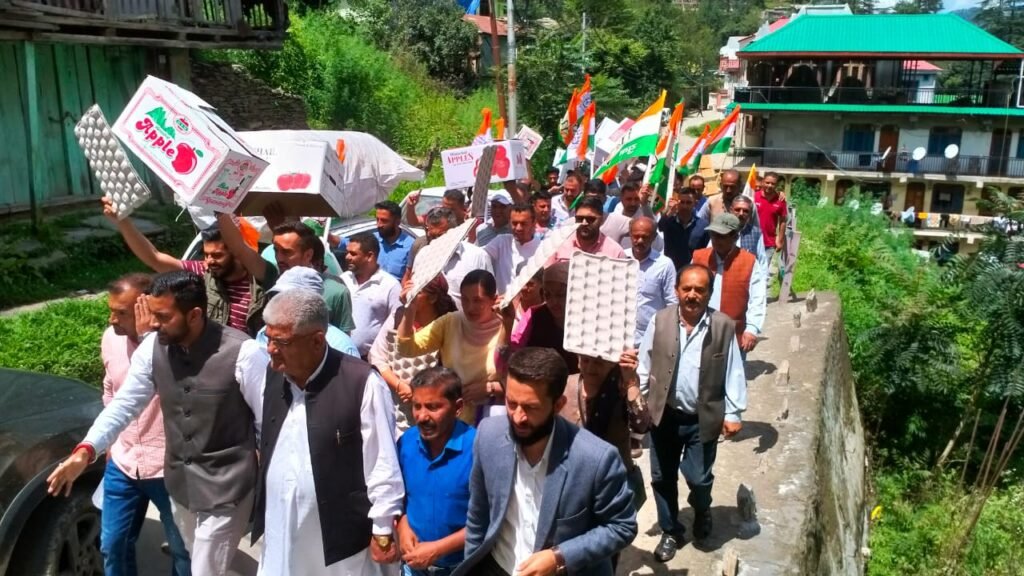 शिमला। जुब्बल नावर कोटखाई ब्लॉक युवा कांग्रेस ने कार्टन, ट्रे सहित अन्य पैकेजिंग सामग्री के दामों में बेहताशा वृद्घि को लेकर कोटखाई में बागवान आक्रोश रैली निकाली। रैली को संबोधित करते हुए ब्लॉक युवा कांग्रेस जुब्बल नावर कोटखाई के अध्यक्ष कपिल ठाकुर ने केंद्र व राज्य सरकार को आड़े हाथ लिया। उन्होंने कहा कि केंद्र व राज्य की भाजपा सरकार की गलत नीतियों के चलते 5000 करोड़ रूपए की आर्थिकी पैदा करने वाले सेब उद्योग पर खतरे के बादल मंडरा रहे हैं। बीते दो वर्षो से लगातार पैकिंग सामग्री में अप्रत्याशित 40 से 50 फीसदी की वृद्घि हो गई हैं। पिछले वर्ष के मुकाबलें इस बार कार्टन में 5 से 10 रुपए जबकि प्रति बंडल ट्रे में 200 रूपए की अप्रत्याशित वृद्घि हुई हैं। निजी कंपनियां पैंकिग सामग्री के दाम बढऩे का कारण केंद्र सरकार द्वारा जीएसटी दर में 12 फीसदी से 18 फीसदी वृद्घि को बताकर पल्ला झाड़ रही हैं। हिमफेड व एचपीएमसी के माध्यम से कार्टन व ट्रे पर राज्य सरकार जीएसटी की दर को घटाने की बात कह रही हैं जो कि मात्र जुमला हैं।