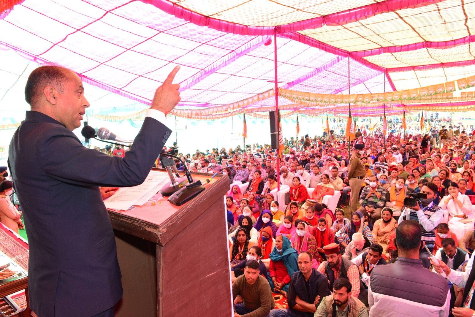 मुख्यमंत्री ने कहा कि प्रदेश के लोगों ने वर्तमान राज्य सरकार को अपना पूरा समर्थन और सहयोग दिया है। उन्होंने कहा कि राज्य सरकार ने कोरोना महामारी के दौरान भी प्रदेश के 42 विधानसभा क्षेत्रों में लगभग 4200 करोड़ रुपए की विकासात्मक परियोजनाआें के लोकार्पण और शिलान्यास किए। उन्होंने कहा कि महामारी के कारण लॉकडाउन के दौरान राज्य सरकार ने देश के विभिन्न हिस्सों में फंसे प्रदेश के 2$ 50 लाख से अधिक लोगों को सुरक्षित घर पहुंचाया है। उन्होंने कहा कि कांग्रेस नेताआें ने संकट के इस समय में कुछ नहीं किया और इस संवेदनशील मामले का राजनीतिकरण करने की भी कोशिश की। उन्होंने कहा कि राज्य में कोई भी मरीज बिस्तर, दवाआें और ऑक्सीजन से वंचित नहीं है। उन्होंने कांग्रेस नेताआें को याद दिलाया कि जब महामारी फैली थी तब राज्य में केवल 50 वेंटिलेटर थे जबकि आज राज्य में 900 से अधिक वेंटिलेटर हैं। उन्होंने कहा कि राज्य में इन्दिरा गांधी चिकित्सा महाविद्यालय शिमला और डॉ$ राजेन्द्र प्रसाद राजकीय चिकित्सा महाविद्यालय टांडा में केवल दो ही ऑक्सीजन प्लांट थे, जबकि आज राज्य में 30 से अधिक ऑक्सीजन प्लांट हैं। जय राम ठाकुर ने कहा कि प्रधानमंत्री नरेन्द्र मोदी के सशक्त और कुशल नेतृत्व के कारण भारत 100 करोड़ टीकाकरण का लक्ष्य हासिल करने वाला विश्व का पहला देश बनकर उभरा है। उन्होंने कहा कि हिमाचल प्रदेश भी पात्र आयु वर्ग के लाभार्थियों को दूसरी खुराक लगाने के शत-प्रतिशत लक्ष्य को हासिल करने के करीब है।