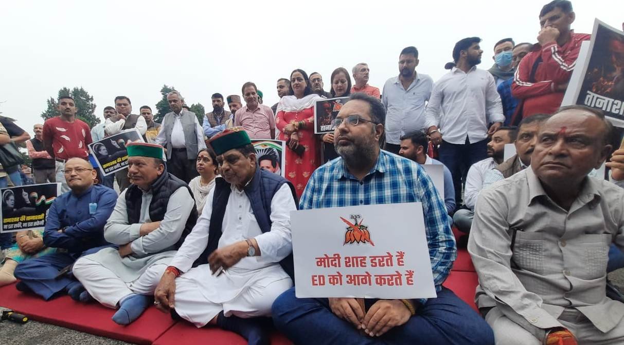 शिमला। कांग्रेस की राष्ट्रीय अध्यक्ष सोनिया गांधी को ईडी के समन के विरोध में कांग्रेस ने प्रदेशभर में सत्यग्रह किया गया। मंगलवार को शिमला के रिज मैदान पर भारी बारिश के बाबजूद राष्ट्रपिता महात्मा गांधी की प्रतिमा के नीचे कांग्रेस नेता सत्यग्रह पर बैठे। इस दौरान उनके हाथों में मोदी सरकार की तानाशाही नीतियों व ईडी के दुरुपयोग के स्लोगन लगे थे।