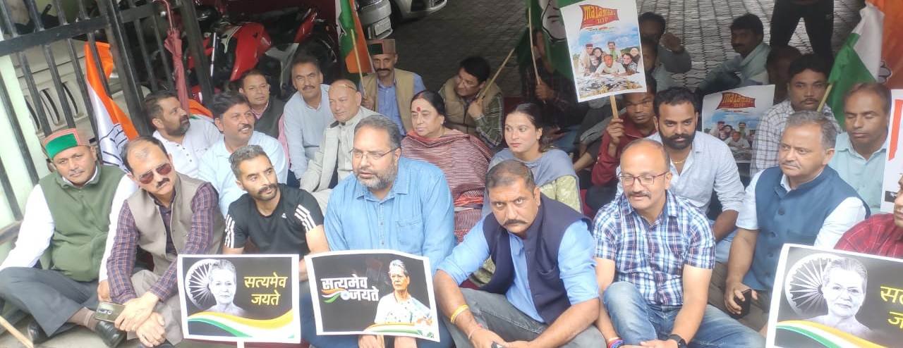 शिमला में जिला कांग्रेस कमेटी शहरी के अध्यक्ष जितेंद्र चौधरी के नेतृत्व में कांग्रेस मुख्यालय राजीव भवन के जनदीक कार्ट रोड पर केंद्र की मोदी सरकार के खिलाफ नारेबाजी करते हुए भाजपा पर केंद्रीय जांच एजंसियों के दुरुपयोग का आरोप लगाया। उन्होंने ईडी पर भी आरोप लगाया कि वह जानबूझकर कर सरकार के इशारे पर उनकी नेता सोनिया गांधी को परेशान करने की कोशिश कर रही है। उनका कहना है कि कांग्रेस भाजपा के किसी भी हथकंडे से डरने वाली नहीं। पूरी कांग्रेस सोनिया गांध व राहुल गांधी के साथ एक चट्टान की तरह खड़ी है। कांग्रेस अपना यह आंदोलन तब तक जारी रखेगी जबतक की भाजपा उनके नेताआें को परेशान करना बंद नहीं कर देती। इस धरना प्रदर्शन में कांग्रेस उपाध्यक्ष नरेश चौहान, अरुण शर्मा,अमित नंदा, यशपाल तनाईक, आकश सैनी, उमा वर्मा,राजेश वर्मा,सेनराम नेगी,जीतराम पंवार, मोहन नेगी,विनेश ठाकुर,अमित शर्मा,मुस्कान, राजू,भूपेंद्र वर्मा,रोहित कुमार, अमृत पाल,राकेश ठाकुर,राजकुमार, विनोद भाटिया,संजीव मेहता,नरेश, आशिष सिंह,सुदेश भाटिया,साहिल भास्कर,सतपाल,विशाल व वीर सिंह मौजूद थे।