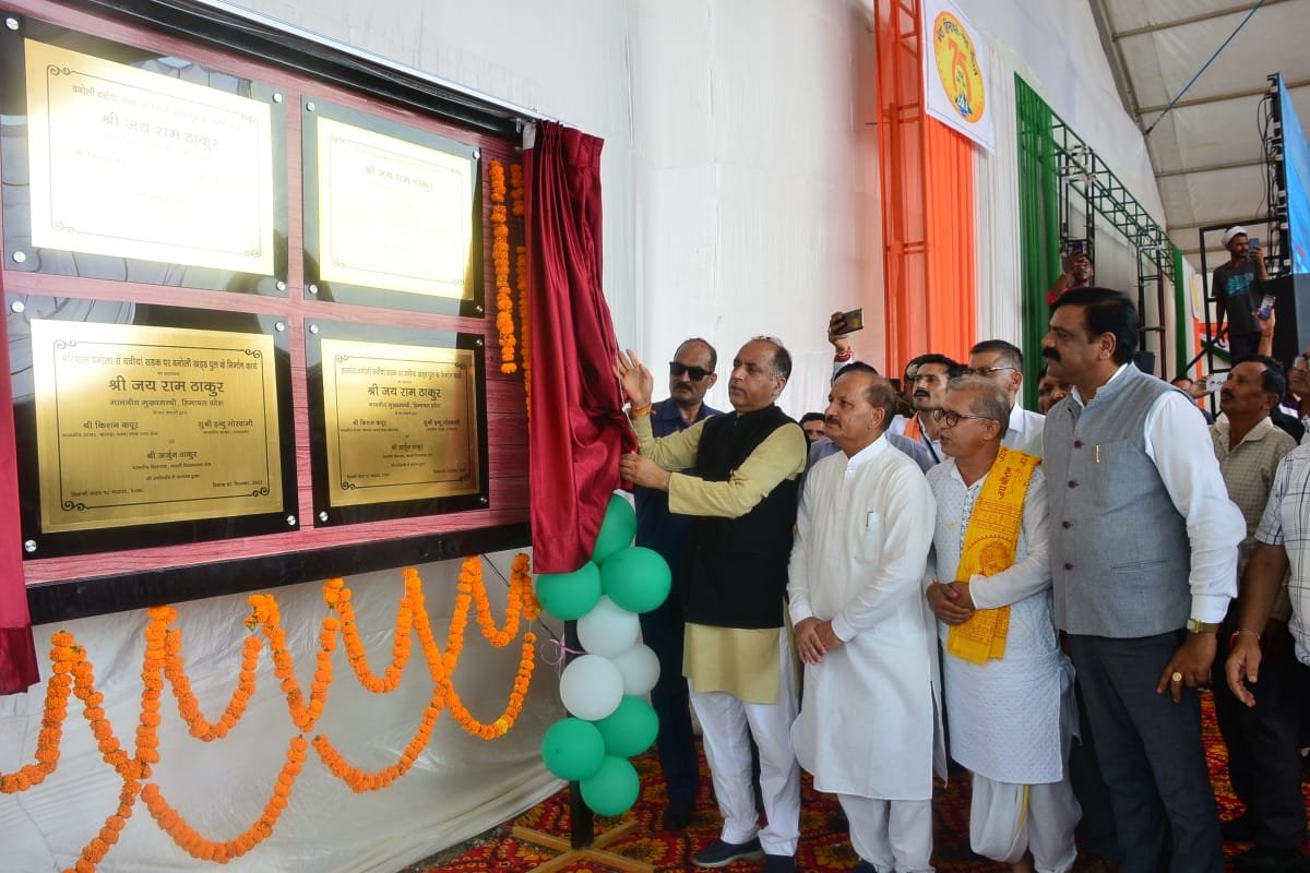 मुख्यमंत्री ने ज्वाली विधानसभा क्षेत्र के लिए लगभग 9.11 करोड़ रुपये लागत की चार विकासात्मक परियोजनाओं के लोकार्पण किए। जिसमें हरनोटा बनोली रोड को जोड़ने के लिए नारियल पनोला से गांव चचियां तक लिंक रोड पर बनोली खड्ड पर 2.52 करोड़ रुपये लागत से निर्मित पुल, बनोली से चचियां सड़क मार्ग पर बनोली खड्ड पर 1.14 करोड़ रुपये की लागत से निर्मित पुल, हरनोटा बनोली से चचियां मस्तगढ़ जौंटा रोड पर बुहाल खड्ड पर 2.75 करोड़ रुपये की लागत से निर्मित पुल और ग्राम पंचायत हार के खब्बल में 2.70 करोड़ रुपये लागत से निर्मित गौ अभयारण्य शामिल है।