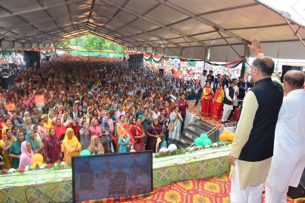 मुख्यमंत्री ने कहा कि प्रदेश सरकार ने धर्मशाला से ‘नारी को नमन’ कार्यक्रम शुरू करके महिलाओं को हिमाचल पथ परिवहन निगम की बसों में किराये में 50 प्रतिशत की छूट प्रदान की है। महिलाओं को यह रियायत राजनीतिक कदम नहीं है, बल्कि महिला सशक्तिकरण सुनिश्चित करने के प्रदेश सरकार के संकल्प की दिशा में एक छोटा कदम है। उन्होंने कहा कि महिला सशक्तिकरण सुनिश्चित करने के लिए सरकार ने शगुन योजना, गृहिणी सुविधा योजना, बेटी है अनमोल और महिला स्वयं सहायता समूहों की मदद जैसी योजनाएं आरंभ की हैं। उन्होंने कहा कि गंभीर बीमारियों या दुर्घटनाओं के कारण असहाय लोगों के लिए प्रदेश सरकार की सहारा योजना वरदान साबित हो रही है। इन असहाय लोगों को प्रतिमाह 3000 रुपये की राशि दी जा रही है। उन्होंने कहा कि अभी तक किसी भी सरकार ने गरीब और जरुरतमंद लोगों के लिए ऐसी योजनाएं शुरू करने के बारे में नहीं सोचा था। उन्होंने कहा कि राज्य सरकार घरेलू बिजली उपभोक्ताओं को 125 यूनिट मुफ्त बिजली भी उपलब्ध करवा रही है। उन्होंने कहा कि जिस पार्टी की अपनी कोई गारंटी नहीं है, वह राज्य के लोगों को दस गारंटी दे रही है।