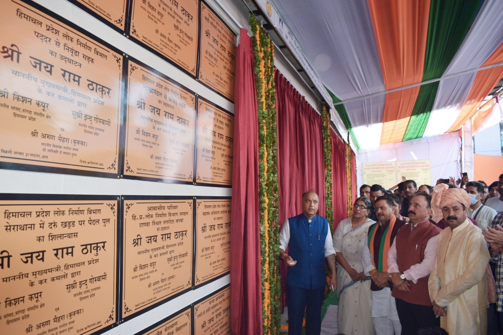 उन्होंने नगरोटा बगवां की 6 पंचायतों के क्लस्टर के लिए 15.32 करोड़ रुपये की ग्रामीण जलापूर्ति योजना, पठियार पंचायत के लिए 5.45 करोड़ रुपये की प्रवाह सिंचाई योजना, राजीव गांधी इंजीनियरिंग कालेज नगरोटा बगवां में 6.80 करोड़ रुपये की लागत से निर्मित इलेक्ट्रिकल इंजीनियरिंग ब्लॉक, 3.89 करोड़ के बाथू खड्ड पुल, 4.80 करोड़ रुपये लागत के नकेड खड्ड पुल और 51 करोड़ रुपये की लागत से बनी बड़ोह-जंदराह-लगडू-खुडियां सड़क तथा 3.69 करोड़ रुपये की सीपनपट-खरात कहास सड़क का लोकार्पण किया। उन्होंने डॉ. राजेंद्र प्रसाद चिकित्सा महाविद्यालय टांडा में 27 करोड़ रुपये से निर्मित मानसिक स्वास्थ्य उत्कृटता केंद्र, नर्सिंग स्कूल भवन 13.71 करोड़ रुपये, कन्या छात्रावास 12.50 करोड़ रुपये, लड़कों के छात्रावास 7.55 करोड़ रुपये और 7.45 करोड़ रुपये की लागत से निर्मित स्नातकोतर कन्या छात्रावास का उदघाटन किया। मुख्यमंत्री ने 24.85 करोड़ रुपये से बनी मस्सल-सरोत्री डबल लेन सड़क और फार्मेसी कालेज में 3.50 करोड़ रुपये की लागत से निर्मित लड़कियों के छात्रावास का उदघाटन भी किया।