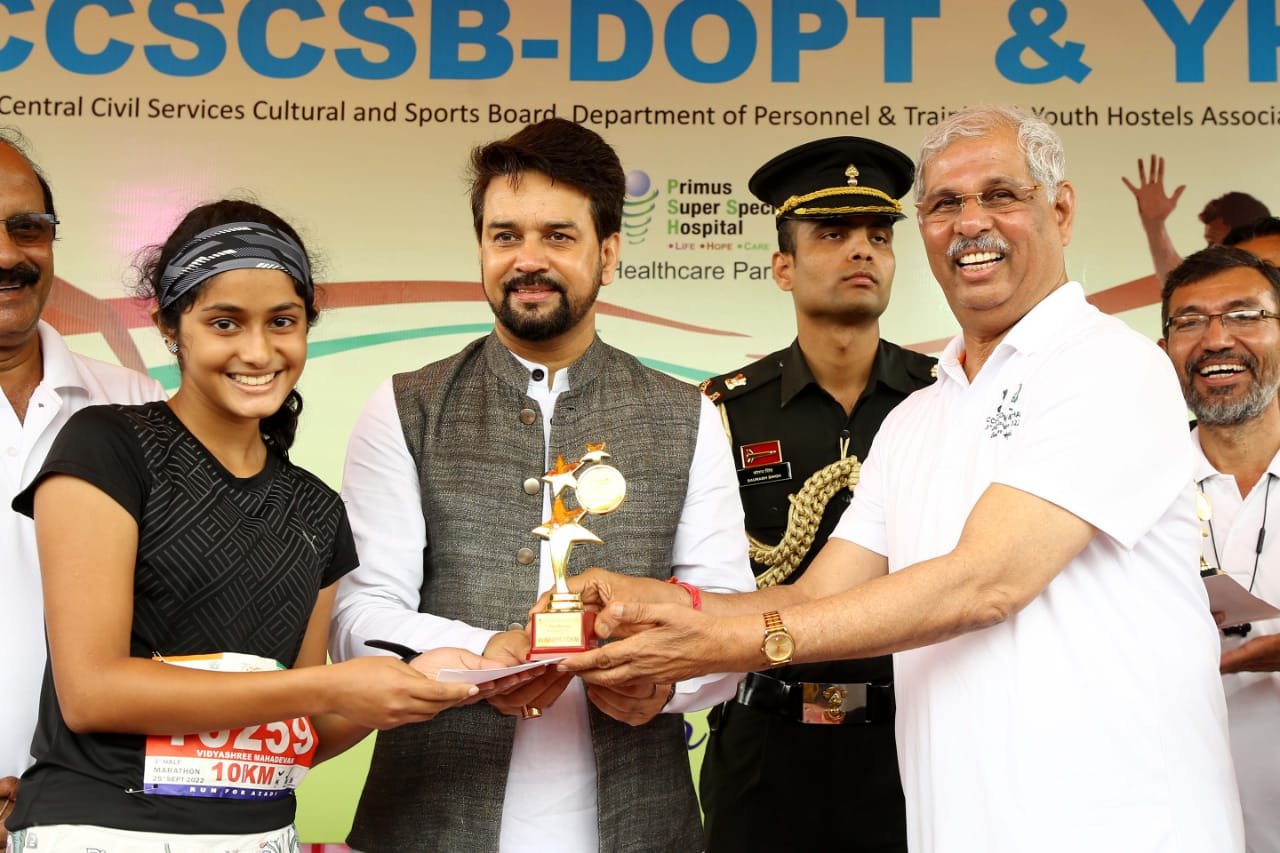शिमला। प्रदेश के राज्यपाल व यूथ हस्टल्स एसोसिएशन ऑफ इंडिया वाईएचएआई के राष्ट्रीय अध्यक्ष राजेन्द्र विश्वनाथ आर्लेकर ने रविवार को नई दिल्ली के जवाहर लाल नेहरू स्टेडियम में यूथ हॉस्टल्स एसोसिएशन ऑफ इण्डिया और सेंट्रल सिविल सर्विसेज कल्चरल एंड स्पोर्ट्स बोर्ड-कार्मिक एवं प्रशिक्षण विभाग के संयुक्त रूप से आयोजित तीसरी हॉफ मैराथन-2022 के दौरान 5 किलोमीटर की दौड़ को हरी झण्डी दिखाई। हॉफ मैराथन के दौरान 21, 10 और 5 किलोमीटर के तीन वर्गों में करवाई गई दौड़ स्पर्धाआें में लगभग 2,000 महिला और पुरुष प्रतिभागियों ने भाग लिया।
