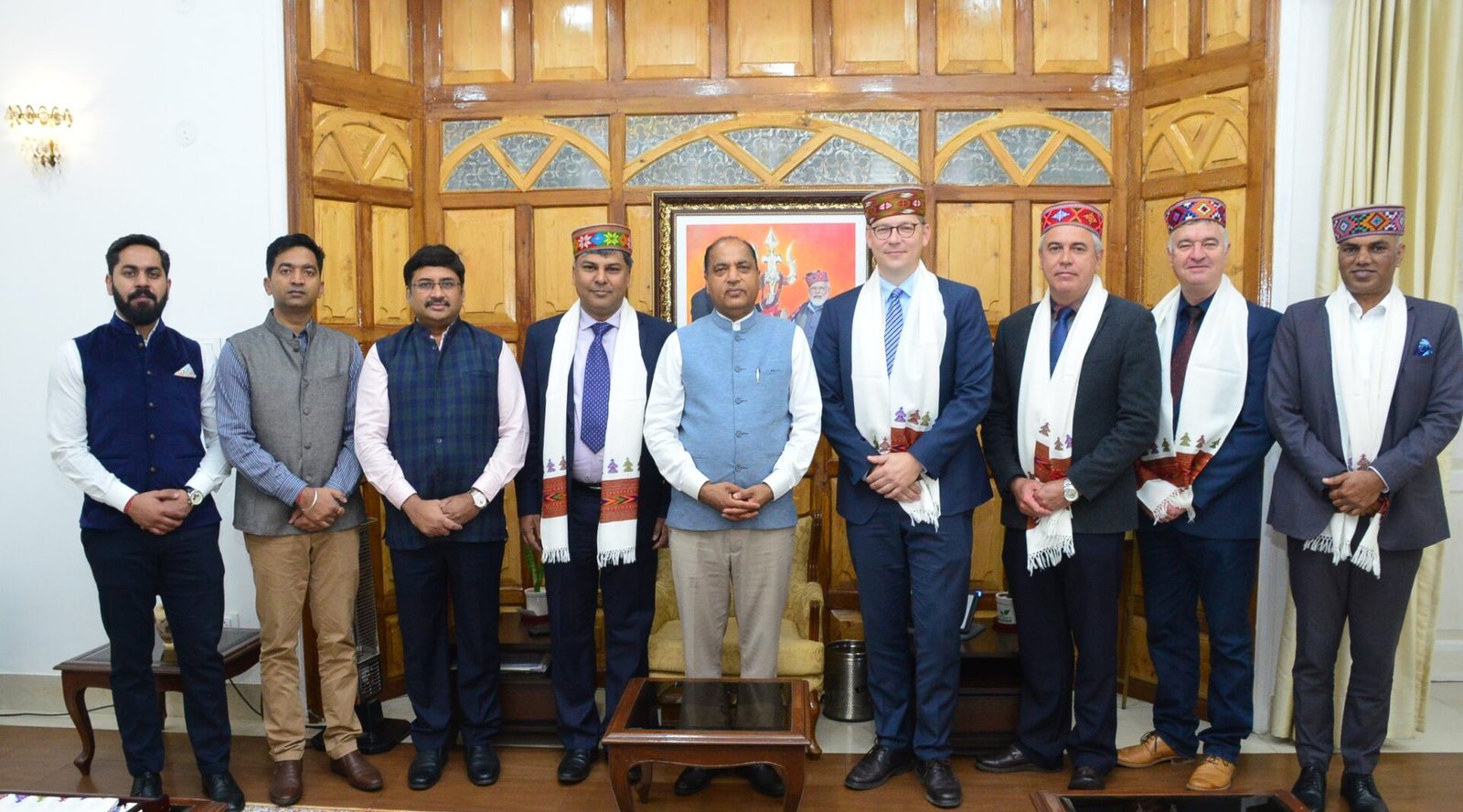 शिमला। मुख्यमंत्री जयराम ठाकुर से शुक्रवार को ओकओवर में रक्षा विनिर्माण यानि डिफेंस मेन्युफैक्चरिंग की प्रसिद्घ भारतीय कंपनी एसएमपीपी के कार्यकारी निदेशक आशीष कंसल और एसएमपीपी की सहभागी जर्मन कंपनी रैनमैटल एसए के मुख्य कार्यकारी अधिकारी जैन पैट्रिक हैलमसन, वरिष्ठ कार्यकारी अधिकारी विलेम एरास्मस और कंपनी के महाप्रबंधक (प्लांट इंजीनियरिंग) जेएस ड्यू टयट ने मुलाकात की।