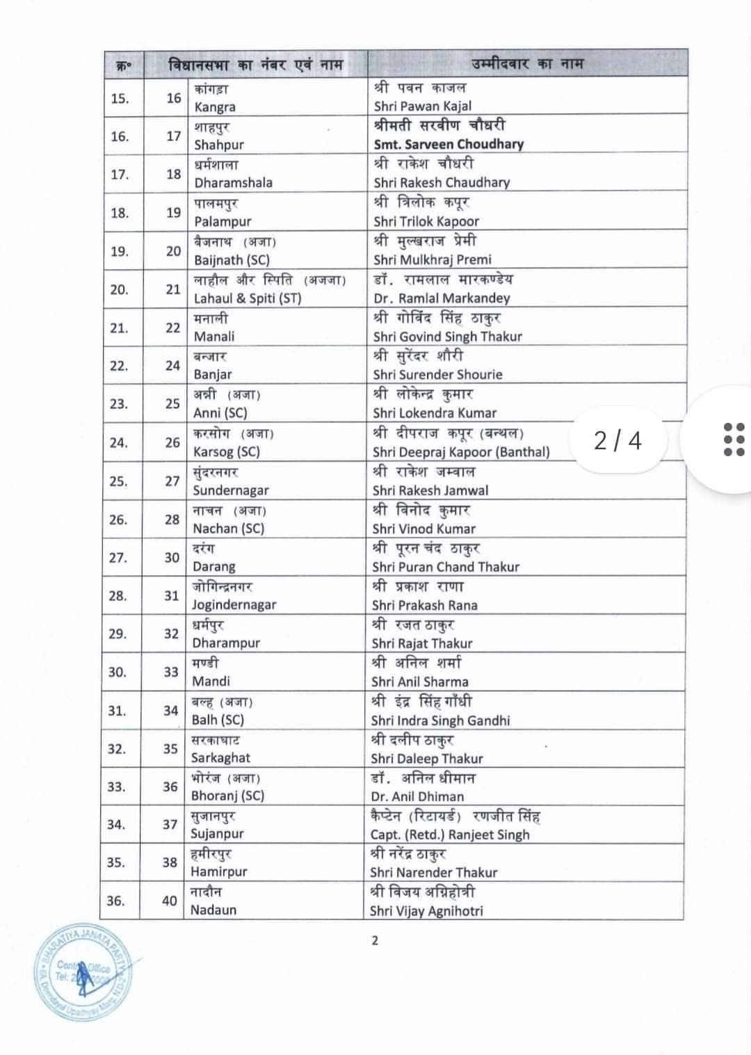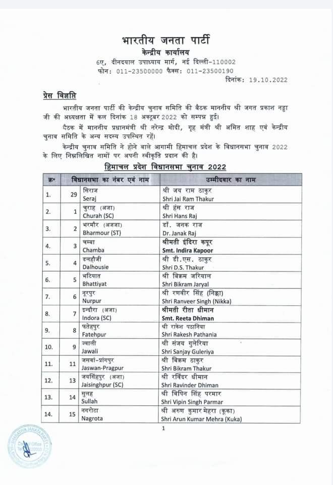 News भाजपा ने 62 प्रत्याशियों की सूची जारी की by Himachalaajkal October 19, 2022 Share FacebookTwitterPinterestWhatsApp Previous articleहिमाचल कांग्रेस के 46 उम्मीदवारों की पहली सूची जारीNext articleएसजेवीएन थर्मल ने पीएफसी व आरईसी के साथ ऋण करार हस्ताक्षरित किया Himachalaajkalhttp://himachalaajkal.in Get in Touch LEAVE A REPLY Cancel reply Comment: Please enter your comment! Name:* Please enter your name here Email:* You have entered an incorrect email address! Please enter your email address here Website: Save my name, email, and website in this browser for the next time I comment. Related Articles News मुख्यमंत्री से नादौन विधानसभा क्षेत्र के बड़ा और फस्टे ग्राम पंचायत के प्रतिनिधिमंडल ने की मुलाक़ात News समावेशी शासन की दिशा में सशक्त कदमः सामाजिक सुरक्षा से सुदृढ़ हो रहा वंचित वर्ग News शिक्षा मंत्री ने निजी बस हादसे में 14 लोगों की मृत्यु पर शोक व्यक्त किया Live Cricket ScoresShimla, Himachal Pradesh weather forecast hourly