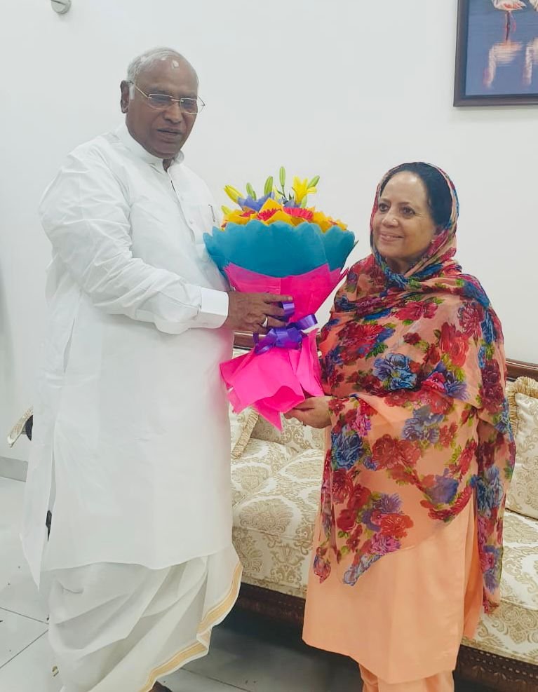 शिमला, अखिल भारतीय कांग्रेस कमेटी के नए अध्यक्ष मल्लिकार्जुन खड़गे से हिमाचल अध्यक्ष प्रतिभा सिंह ने नई दिल्ली में मुलाक़ात कर उन्हें नए दायित्व के लिए हिमाचल प्रदेश कांग्रेस की ओर से शुभकामनाएँ दी।