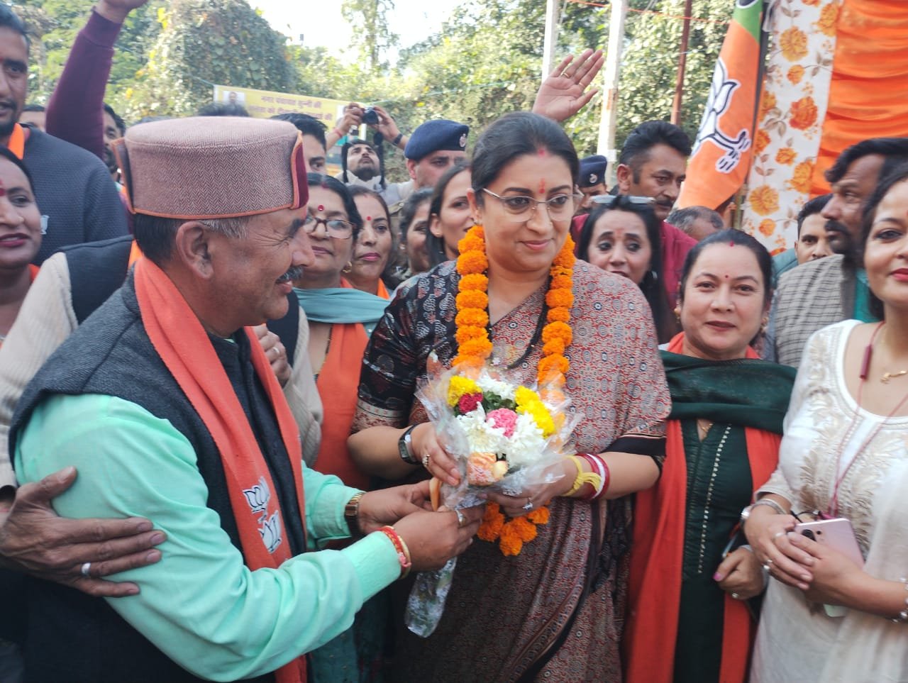 केन्द्रीय मंत्री ने कहा कि केन्द्र सरकार ने देश के 140 करोड़ लोगों को मुफ्त में कोरोना के टिके लगवाये है और लोगों से एक भी पैसा नहीं लिया गया। स्मृति ईरानी ने कांग्रेस प्रत्याशी पर निशाना साधते हुए कहा कि उन्हें पता नहीं है कि शिमला ग्रामीण से रवि मेहता कौन है। अमेठी में राहुल गांधी को भी पता नहीं था कि स्मृति ईरानी कौन है लेकिन अमेठी की जनता ने बता दिया कि स्मृति ईरानी कौन है। वैसे ही शिमला ग्रामीण की जनता भी कांग्रेस प्रत्याशी को बताएगी की रवि मेहता कौन है। कांग्रेस झुठी गांरटियों का मॉडल प्रदेश की जनता को नहीं बेच पाऐगी क्योंकि कांग्रेस के झुठे वादे इस प्रदेश की जनता को पता है। कांग्रेस ने 2012 के चुनावी घोषणा पत्र में बेरोजगारों को 1000 रूपया मासिक भता देने का ऐलान किया था लेकिन सता में आने के बाद भूल गई। पिछली बार कांग्रेस ने युवाओं को ठगा था इस बार कांग्रेस महिलाओं को ठगने की तैयारी में है। लेकिन कांग्रेस को यह मालूम नहीं है कि प्रदेश की जनता इस बार कांग्रेस को ठगने वाली है
