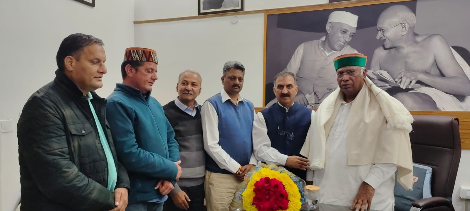 शिमला। हिमाचल कांग्रेस के वरिष्ठ नेता व कांग्रेस प्रचार समिति के अध्यक्ष सुखविंद्र सिंह सुक्खू ने मंगलवार को दिल्ली में पार्टी के राष्ट्रीय अध्यक्ष मल्लिकार्जुन खडग़े से मुलाकात है। इस दौरान उन्होंने कांग्रेस अध्यक्ष को चुनाव की फीडबैक भी दी। प्रदेश विधानसभा चुनाव संपन्न होने के बाद सुक्खू का यह पहला दिल्ली दौरा है। उनके साथ प्रदेश कांग्रेस के कई नेता भी मौजूद रहे। सुक्खू ने मल्लिकार्जुन खडग़े को पार्टी का राष्ट्रीय अध्यक्ष बनने पर बधाई दी।