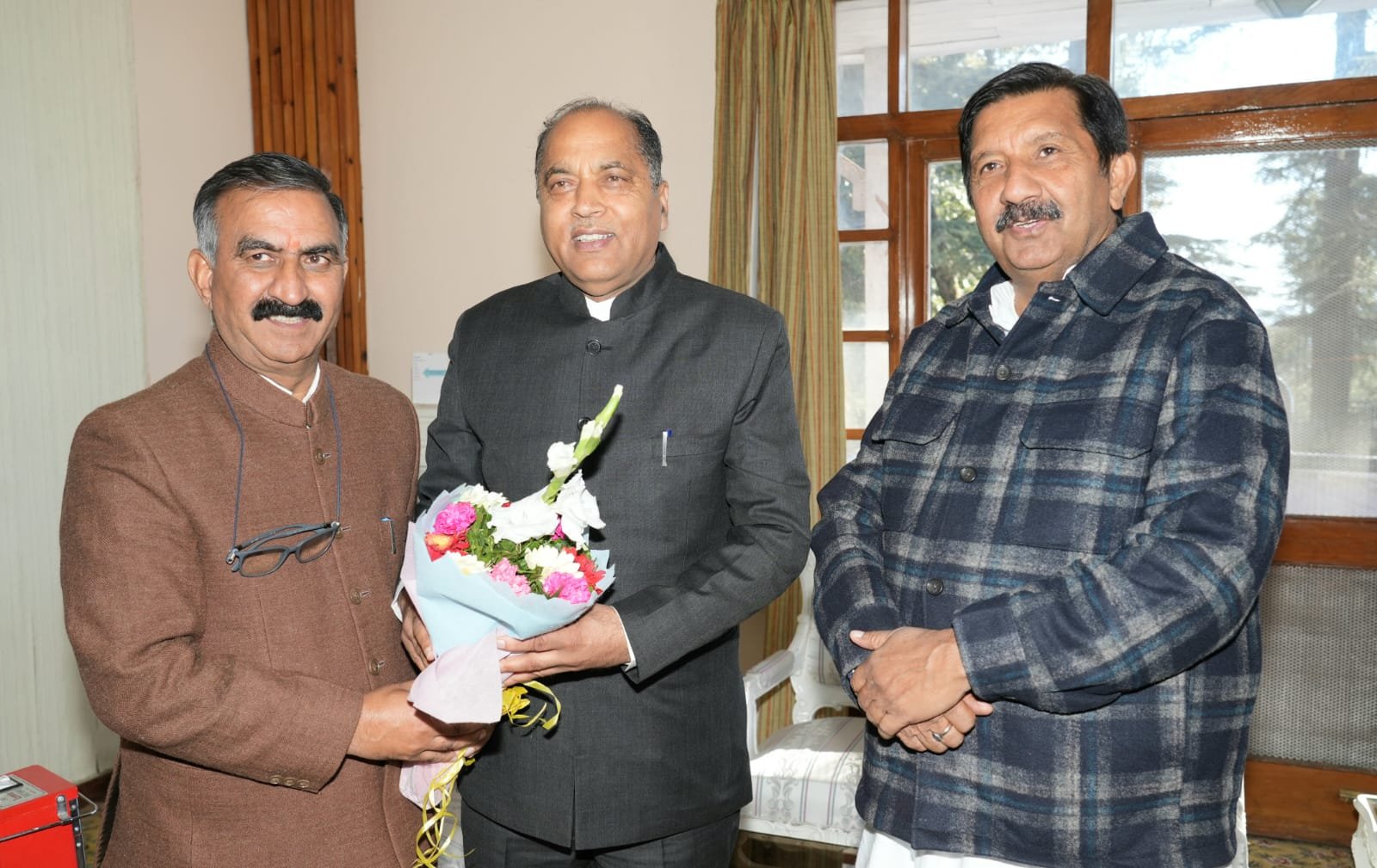 शिमला। नेता प्रतिपक्ष व पूर्व मुख्यमंत्री जयराम ठाकुर ने मंगलवार को पीटरहॉफ होटल में मुख्यमंत्री सुखविंदर सिंह सुक्खू से मुलाकात की। यह एक शिष्टाचार मुलाकात थी। इस अवसर पर उप मुख्यमंत्री मुकेश अग्रिहोत्री भी उपस्थित थे।