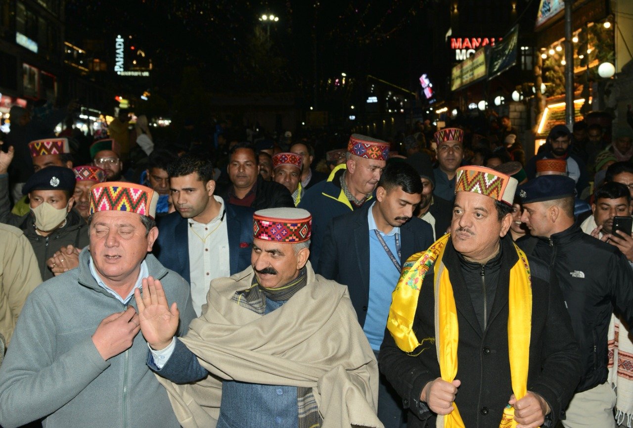 शिमला, मुख्यमंत्री सुखविंदर सिंह सुक्खू ने नव वर्ष-2023 की पहली संध्या में मनाली के मॉल रोड पर सैर की।