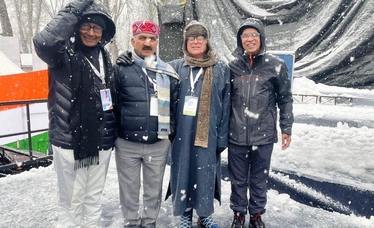 शिमला, मुख्यमंत्री ठाकुर सुखविंदर सिंह सुक्खू ने सोमवार को श्रीनगर में भारी बर्फबारी के बीच वरिष्ठ कांग्रेस नेता राहुल गांधी के नेतृत्व में शुरू की गई भारत जोड़ो यात्रा के समापन समारोह में भाग लिया।