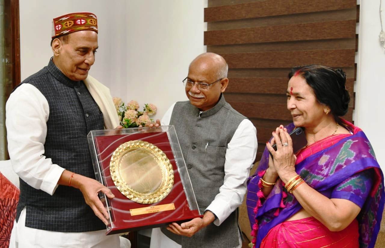 शिमला। राज्यपाल शिव प्रताप शुक्ल ने रविवार को नई दिल्ली में रक्षा मंत्री राजनाथ सिंह से मुलाकात की। इस अवसर पर लेडी गवर्नर जानकी शुक्ल भी उनके साथ उपस्थित थीं। यह एक शिष्टाचार मुलाकात थी। लेडी गवर्नर जानकी शुक्ल ने रक्षा मंत्री राजनाथ सिंह की पत्नी सावित्री सिंह को हिमाचली टोपी भेंट कर सम्मानित किया।