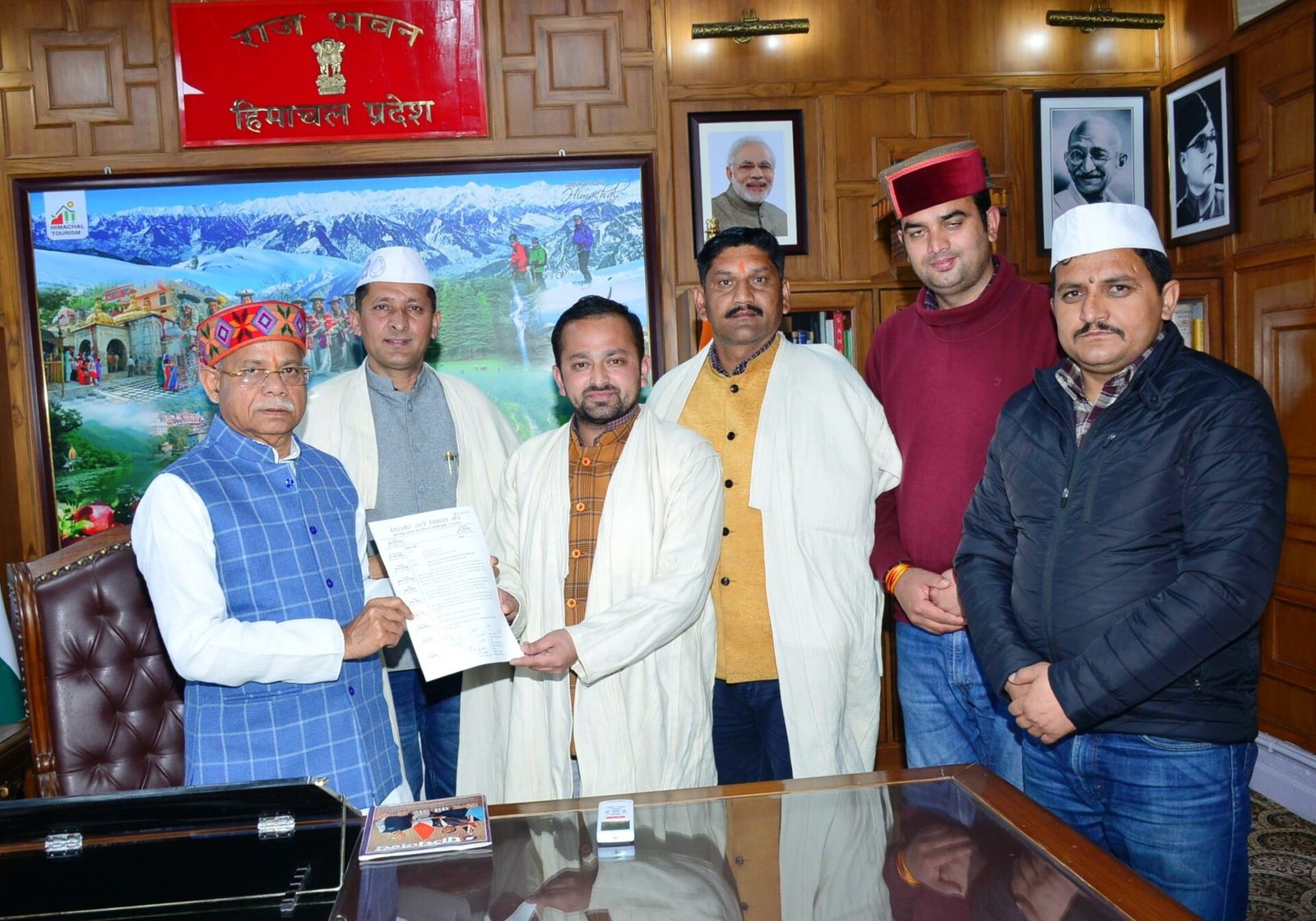 राज्यपाल शिव प्रताप शुक्ल से आज राजभवन में सिरमौर हाटी विकास मंच के प्रतिनिधिमंडल ने अध्यक्ष प्रदीप सिंह सिंगटा के नेतृत्व में शिष्टाचार मुलाकात की। प्रतिनिधिमंडल ने राज्यपाल को हाटी समुदाय को जनजातीय दर्जा प्रदान करने के संबंध में ज्ञापन भी सौंपा।